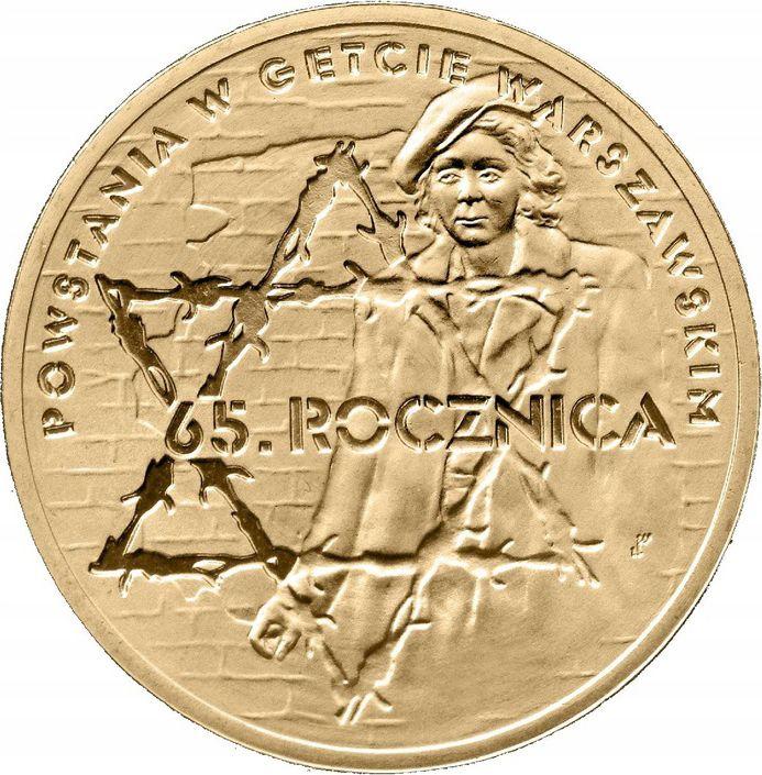 Find out the current coin value of the Polish 2 Zlote 2008 "65th Anniversary of Warsaw Ghetto Uprising" with mark MW UW. This brass coin from the times of III Republic after denomination struck at the Warsaw Mint. Wondering how much a coin like this is worth? The record price belongs to the lot 347 sold at the Münzhandlung Dr. Dominik Elkowicz auction for EUR 1. Bidding took place June 5, 2023.