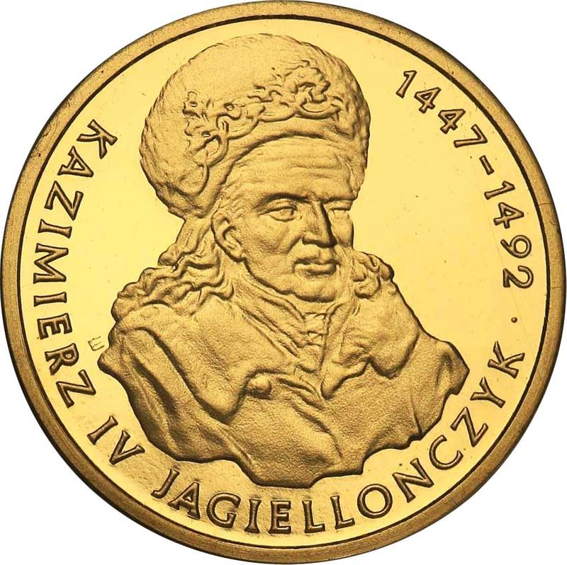 Find out the current coin value of the Polish 100 Zlotych 2003 "Casimir IV Jagiellon" with mark MW ET. This gold coin from the times of III Republic after denomination struck at the Warsaw Mint. Wondering how much a coin like this is worth? The record price belongs to the lot 1098 sold at the Rzeszowski Dom Aukcyjny auction for PLN 3,000. Bidding took place September 6, 2025.