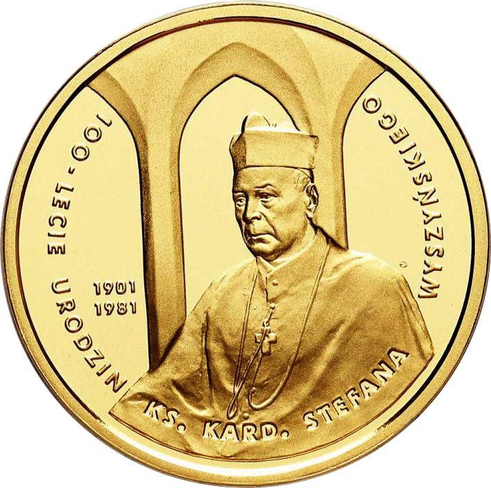Find out the current coin value of the Polish 200 Zlotych 2001 "100th centenary of Priest Cardinal Stefan Wyszynski's birth" with mark MW EO. This gold coin from the times of III Republic after denomination struck at the Warsaw Mint. Wondering how much a coin like this is worth? The record price belongs to the lot 1147 sold at the Rzeszowski Dom Aukcyjny auction for PLN 5,500. Bidding took place September 6, 2025.