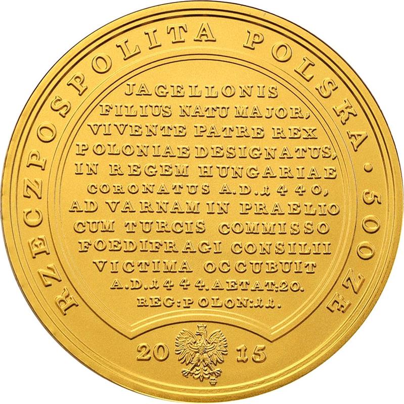 Find out the current coin value of the Polish 500 Zlotych 2015 "Ladislas III of Varna" with mark MW. This gold coin from the times of III Republic after denomination struck at the Warsaw Mint. Wondering how much a coin like this is worth? The record price belongs to the lot 1218 sold at the Rzeszowski Dom Aukcyjny auction for PLN 26,250. Bidding took place September 6, 2025.