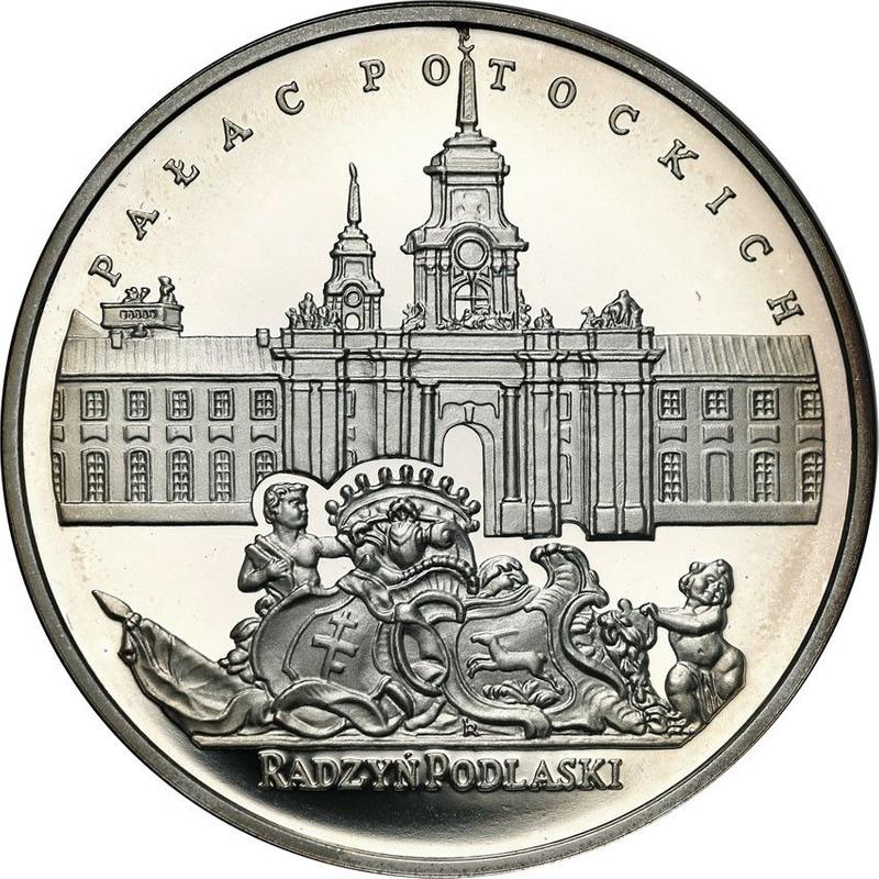 Find out the current coin value of the Polish 20 Zlotych 1999 "Potocki Palace in Radzyn Podlaski" with mark MW RK. This silver coin from the times of III Republic after denomination struck at the Warsaw Mint. Wondering how much a coin like this is worth? The record price belongs to the lot 907 sold at the WÓJCICKI Polski Dom Aukcyjny auction for PLN 1,500. Bidding took place February 26, 2022.