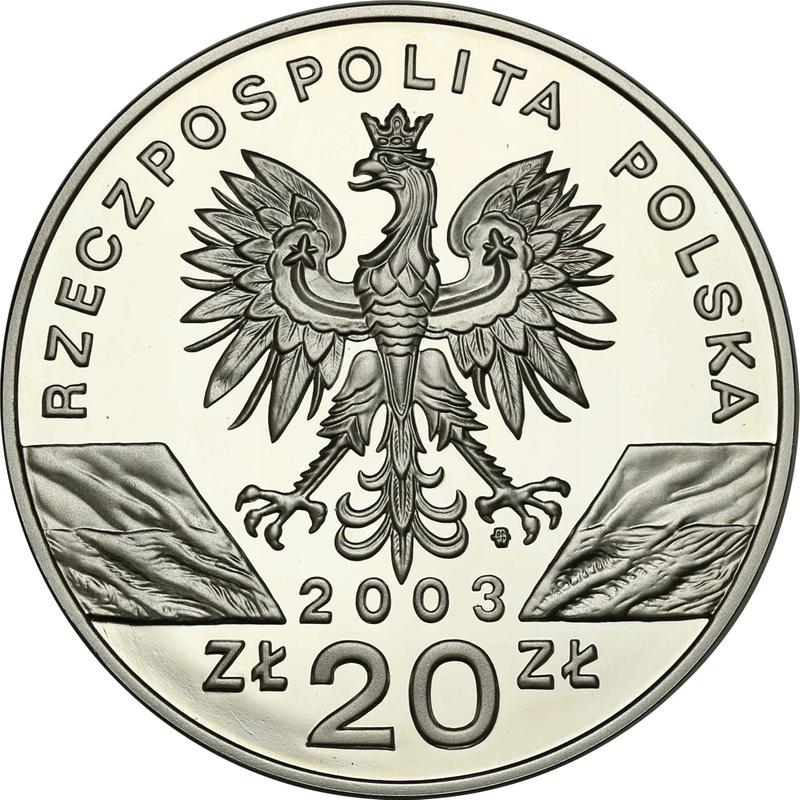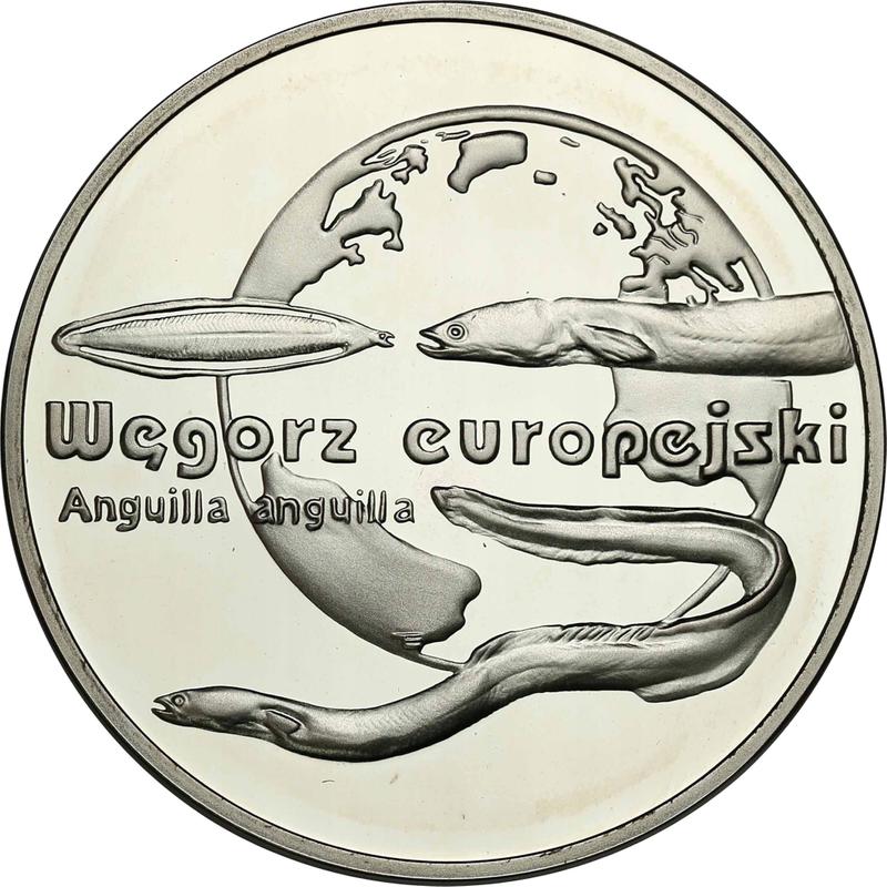 Find out the current coin value of the Polish 20 Zlotych 2003 "European eel" with mark MW ET. This silver coin from the times of III Republic after denomination struck at the Warsaw Mint. Wondering how much a coin like this is worth? The record price belongs to the lot 911 sold at the WÓJCICKI Polski Dom Aukcyjny auction for PLN 2,150. Bidding took place February 26, 2022.
