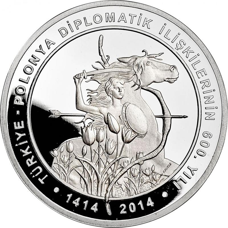 According to the latest data as of December 5, 2025 the average price of a Silver coin 20 Zlotych 2014 "600 years of Polish-Turkish diplomatic relations" with mark MW is 140 USD for regular strike and 110 USD for coins minted using the PROOF technology.