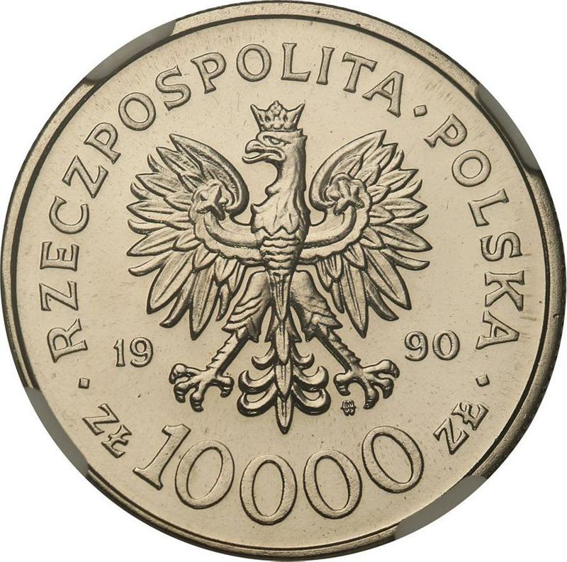 According to the latest data as of December 6, 2025 the average price of a coin 10000 Zlotych 1990 "The 10th Anniversary of forming the Solidarity Trade Union" with mark MW is 35 USD for regular strike and 45 USD for coins minted using the PROOF technology. The coin is made of non-precious metal, so in poor condition it may have extremely low value and liquidity.