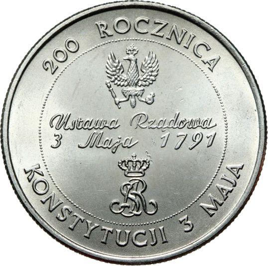 Find out the current coin value of the Polish 10000 Zlotych 1991 "200th anniversary of the Constitution - May 3" with mark MW. This steel coin from the times of III Republic before denomination struck at the Warsaw Mint. Wondering how much a coin like this is worth? The record price belongs to the lot 3008 sold at the Stary Sklep auction for PLN 300. Bidding took place October 14, 2023.