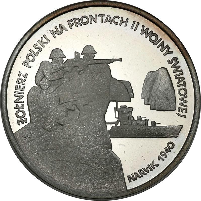Find out the current coin value of the Polish 100000 Zlotych 1991 "Battles of Narvik 1940" with mark MW BCH. This silver coin from the times of III Republic before denomination struck at the Warsaw Mint. Wondering how much a coin like this is worth? The record price belongs to the lot 386425 sold at the Warszawskie Centrum Numizmatyczne auction for PLN 185. Bidding took place February 1, 2024.