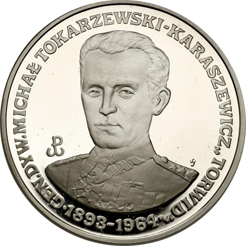 Find out the current coin value of the Polish 200000 Zlotych 1991 "Michal Tokarzewski-Karaszewicz 'Torvid'" with mark MW. This silver coin from the times of III Republic before denomination struck at the Warsaw Mint. Wondering how much a coin like this is worth? The record price belongs to the lot 3031 sold at the Stary Sklep auction for PLN 260. Bidding took place October 14, 2023.