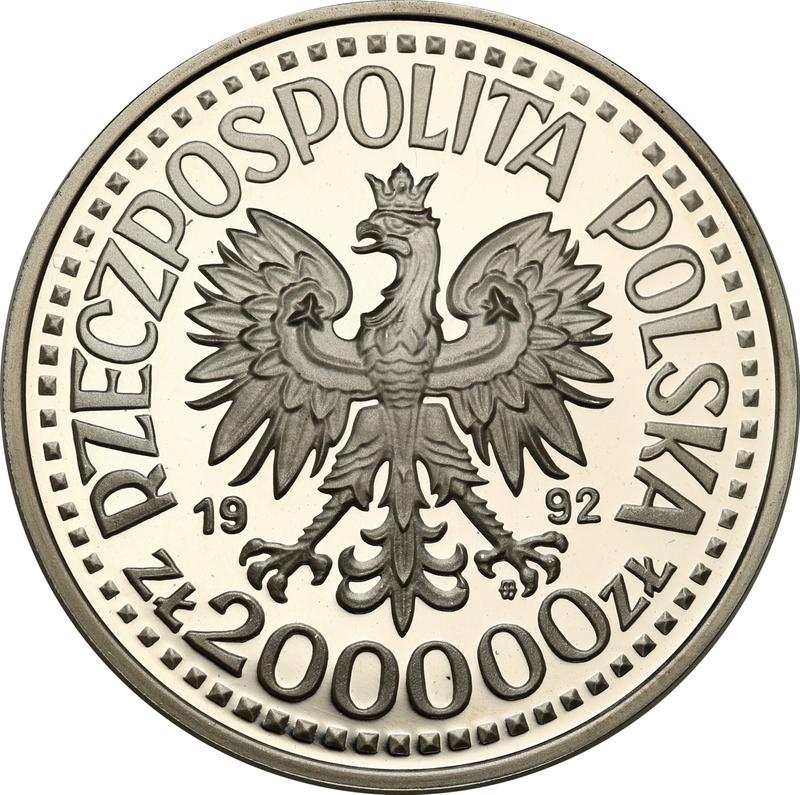 200000 Zlotych 1992 MW ET "Ladislas III of Varna". Bust portrait (Poland, III Republic before denomination)