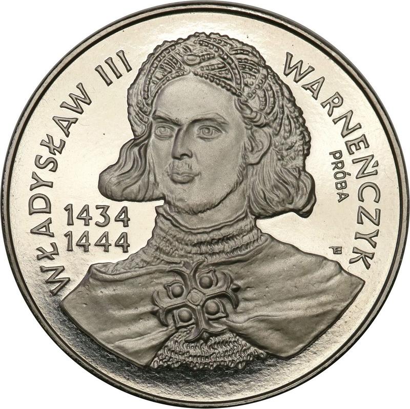 Find out the current coin value of the Polish Pattern 200000 Zlotych 1992 "Ladislas III of Varna" with mark MW ET. Nickel. This nickel coin from the times of III Republic before denomination struck at the Warsaw Mint. Wondering how much a coin like this is worth? The record price belongs to the lot 2547 sold at the NIEMCZYK - Dom Aukcyjny auction for PLN 2,500. Bidding took place December 11, 2022.