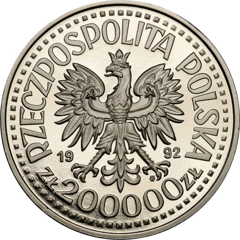 According to the latest data as of December 5, 2025 the average price of a coin 200000 Zlotych 1992 "Ladislas III of Varna" with mark MW ET, Nickel is 180 USD for regular strike and 200 USD for coins minted using the PROOF technology. The coin is made of non-precious metal, so in poor condition it may have extremely low value and liquidity.
