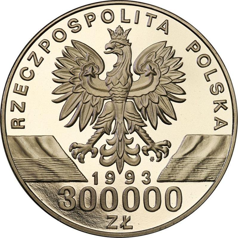 According to the latest data as of December 5, 2025 the average price of a coin 300000 Zlotych 1993 "Barn swallow" with mark MW ET, Nickel is 290 USD for regular strike and 280 USD for coins minted using the PROOF technology. The coin is made of non-precious metal, so in poor condition it may have extremely low value and liquidity.