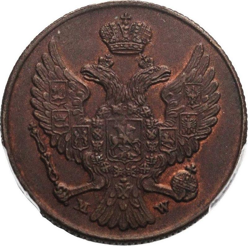 Find out the current coin value of the Polish 3 Grosze 1840 "Fan tail" with mark MW. Restrike. This copper coin from the times of Russian protectorate struck at the Warsaw Mint. Wondering how much a coin like this is worth? The record price belongs to the lot 393 sold at the NIEMCZYK - Dom Aukcyjny auction for PLN 3,000. Bidding took place May 24, 2014.