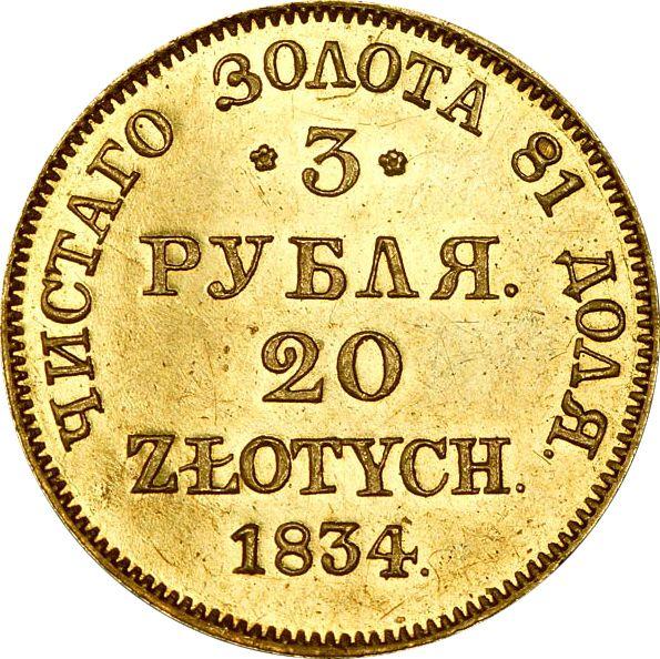 3 Rubles - 20 Zlotych 1834 MW (Poland, Russian protectorate)