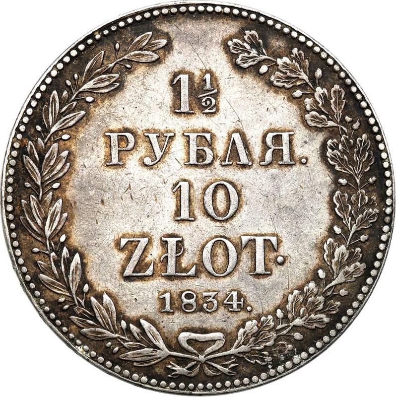 How much is the silver coin of Russian protectorate 1-1/2 Roubles - 10 Zlotych 1834 НГ?