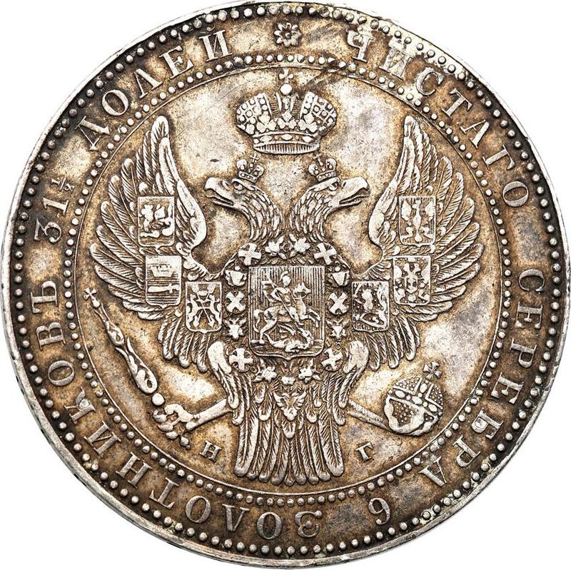 Find out the current coin value of the Polish 1-1/2 Roubles - 10 Zlotych 1834 with mark НГ. This silver coin from the times of Russian protectorate struck at the Saint Petersburg Mint. Wondering how much a coin like this is worth? The record price belongs to the lot 119 sold at the RND auction for RUB 1,750,000. Bidding took place April 24, 2016.
