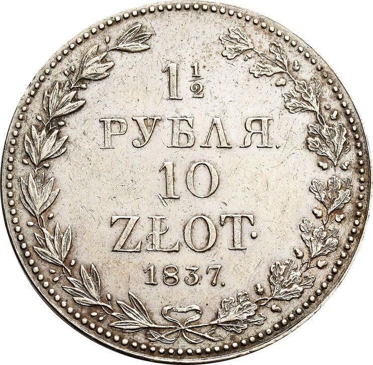 1-1/2 Roubles - 10 Zlotych 1837 MW (Poland, Russian protectorate)