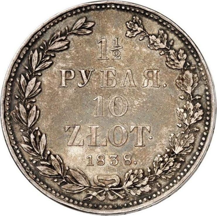 How much is the silver coin of Russian protectorate 1-1/2 Roubles - 10 Zlotych 1838 НГ?