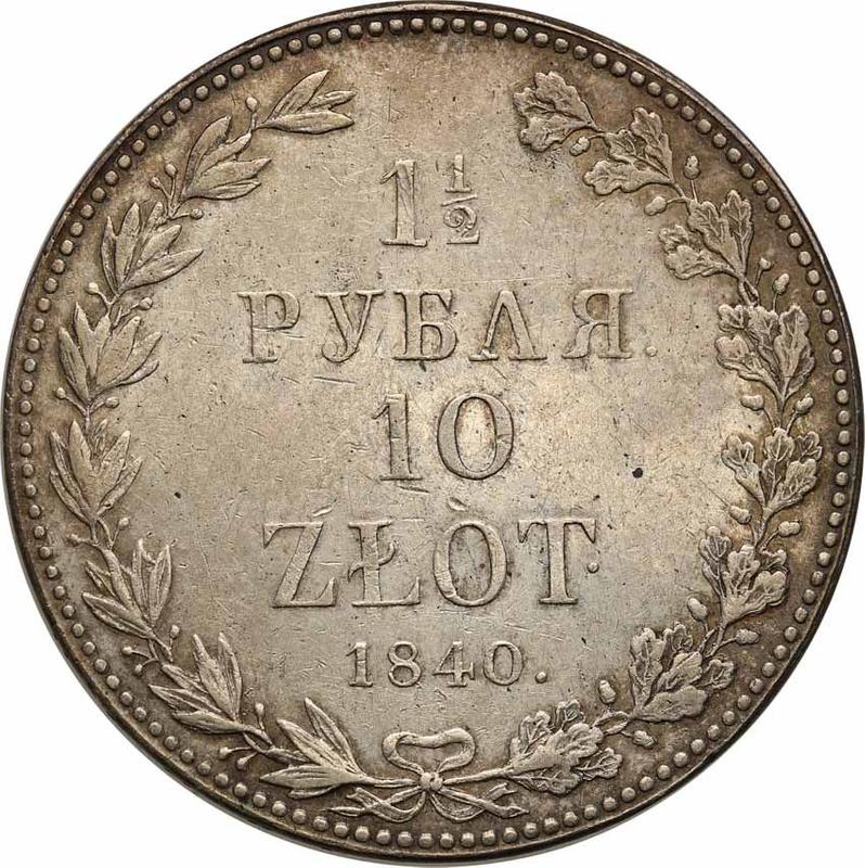 1-1/2 Roubles - 10 Zlotych 1840 MW (Poland, Russian protectorate)