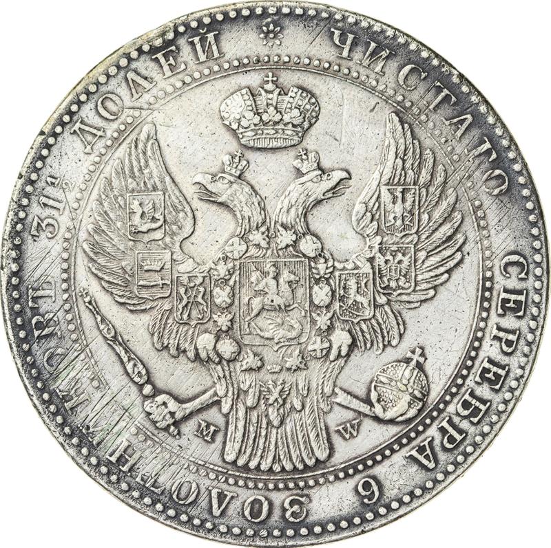 According to the latest data as of December 5, 2025 the average price of a Silver coin 1-1/2 Roubles - 10 Zlotych 1841 with mark MW is 710 USD.