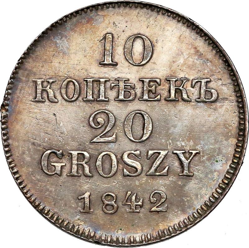 10 Kopecks - 20 Groszy 1842 MW (Poland, Russian protectorate)