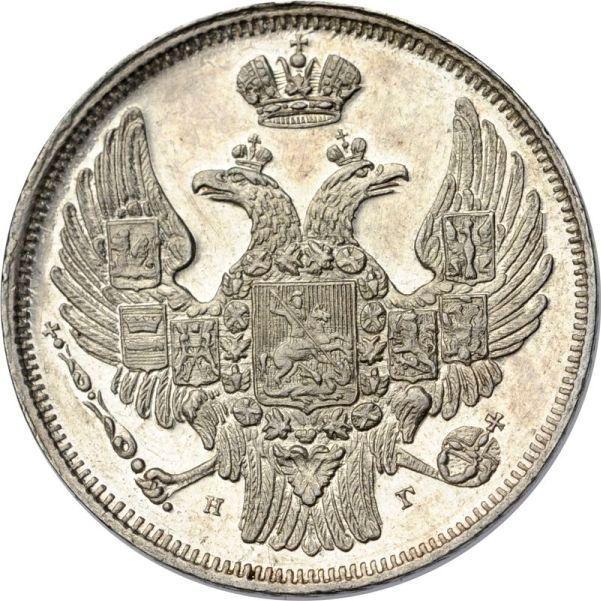 Find out the current coin value of the Polish 15 Kopeks - 1 Zloty 1832 with mark НГ. St. George without cloak. This silver coin from the times of Russian protectorate struck at the Saint Petersburg Mint. Wondering how much a coin like this is worth? The record price belongs to the lot 2 sold at the Alexander auction for USD 4,400. Bidding took place March 23, 2013.