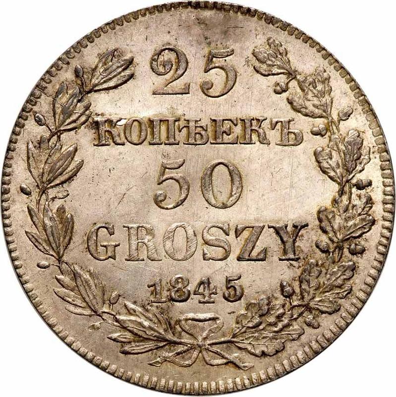 25 Kopeks - 50 Groszy 1845 MW (Poland, Russian protectorate)