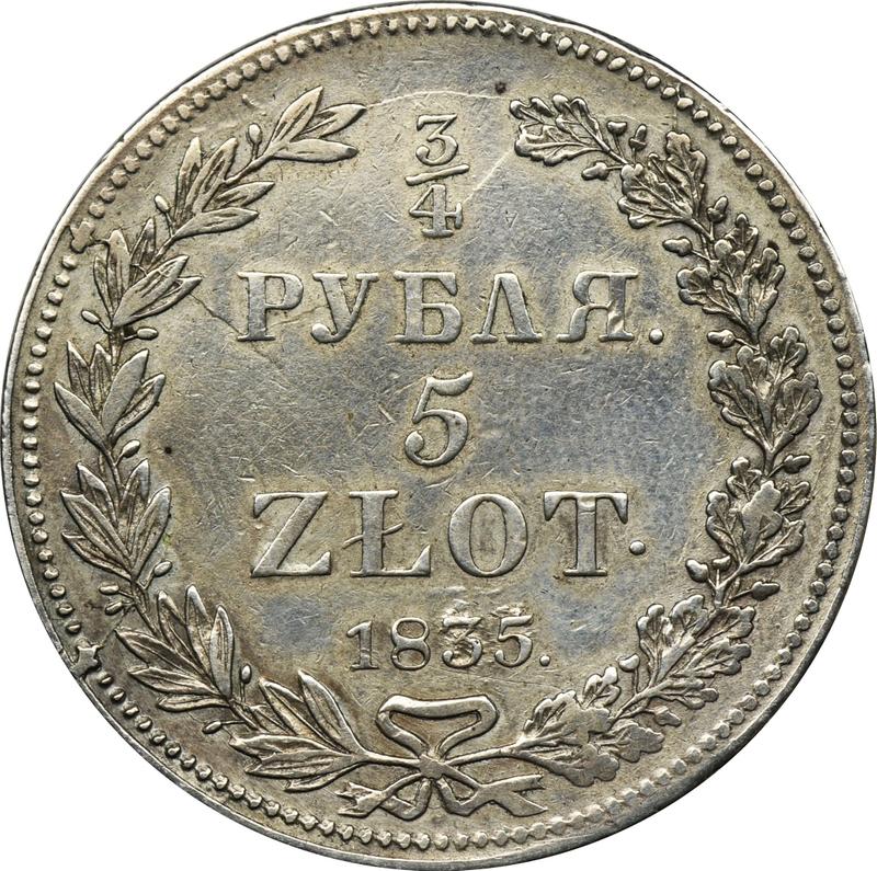 How much is the silver coin of Russian protectorate 3/4 Rouble - 5 Zlotych 1835 НГ, Narrow tail?