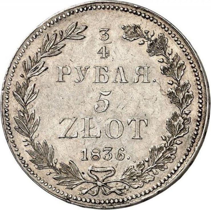 How much is the silver coin of Russian protectorate 3/4 Rouble - 5 Zlotych 1836 НГ, Narrow tail?