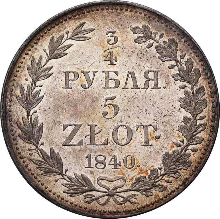 3/4 Rouble - 5 Zlotych 1840 MW. Narrow tail (Poland, Russian protectorate)
