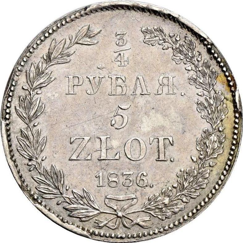 How much is the silver coin of Russian protectorate 3/4 Rouble - 5 Zlotych 1836 НГ, Wide tail?