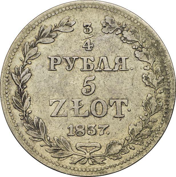 3/4 Rouble - 5 Zlotych 1837 MW. Wide tail (Poland, Russian protectorate)
