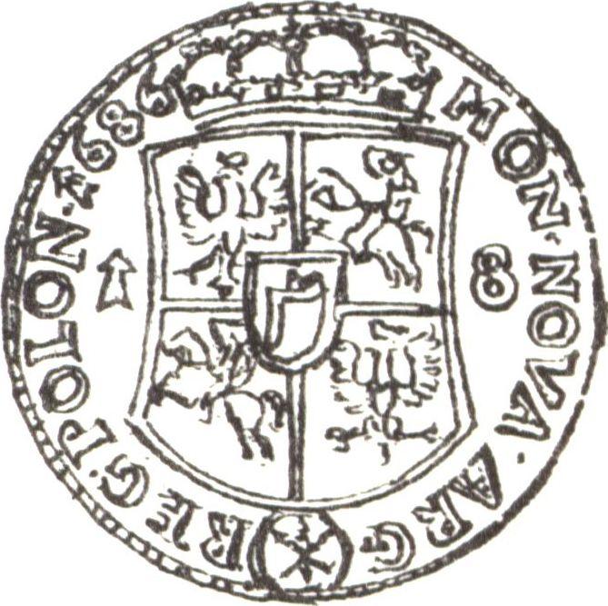 Ort (18 Groszy) 1686 TLB "Curved shield". Antique falsification (Poland, John III Sobieski)