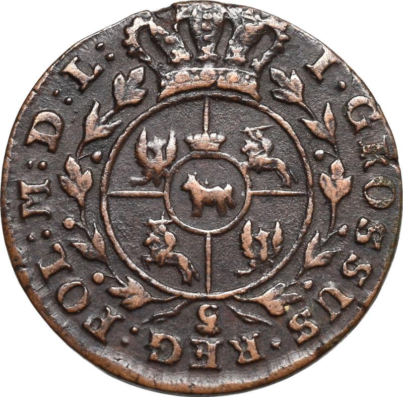 Find out the current coin value of the Polish 1 Grosz 1769 with mark g. This copper coin from the times of Stanislaw Augustus struck at the Warsaw Mint. Wondering how much a coin like this is worth? The record price belongs to the lot 705 sold at the NIEMCZYK - Dom Aukcyjny auction for PLN 4,000. Bidding took place December 10, 2022.