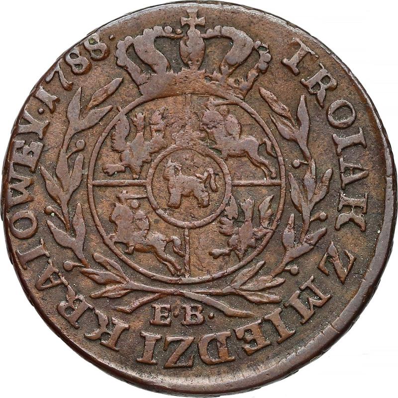 3 Groszy (Trojak) 1788 EB "Z MIEDZI KRAIOWEY" (Poland, Stanislaus II Augustus)