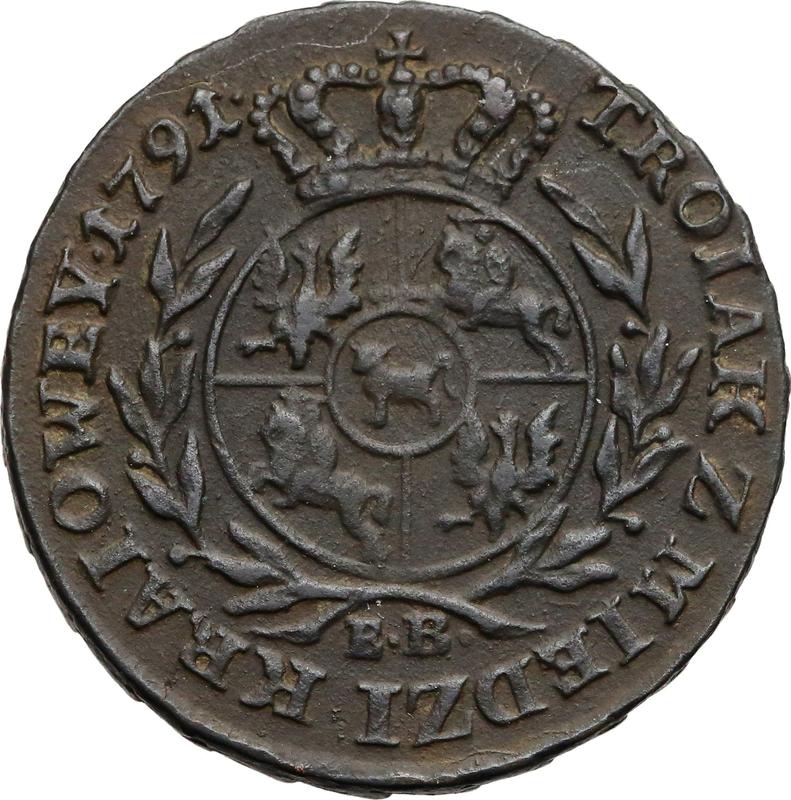 3 Groszy (Trojak) 1791 EB "Z MIEDZI KRAIOWEY" (Poland, Stanislaus II Augustus)