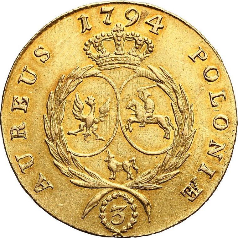 Find out the current coin value of the Polish 3 Ducat 1794 "Kościuszko Uprising". This gold coin from the times of Stanislaw Augustus struck at the Warsaw Mint. Wondering how much a coin like this is worth? The record price belongs to the lot 941 sold at the Stary Sklep auction for PLN 98,000. Bidding took place February 12, 2022.
