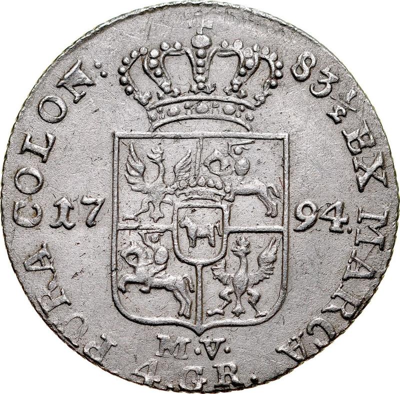 1 Zloty (4 Grosze) 1794 MV. Inscription 83 1/2 (Poland, Stanislaus II Augustus)