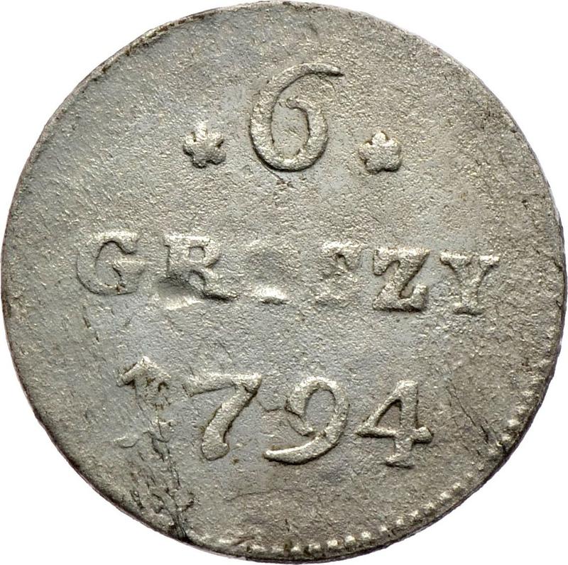 6 Groszy 1794 "Kościuszko Uprising". AUGUTUS (Poland, Stanislaus II Augustus)