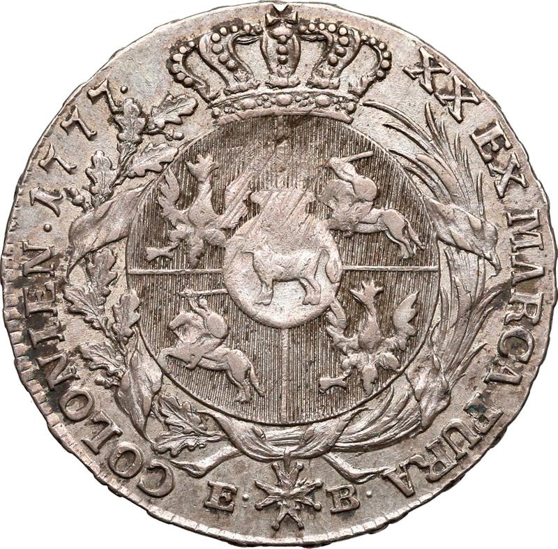 Find out the current coin value of the Polish 1/2 Thaler 1777 "Ribbon in hair" with mark EB. This silver coin from the times of Stanislaw Augustus struck at the Warsaw Mint. Wondering how much a coin like this is worth? The record price belongs to the lot 103 sold at the Stary Sklep auction for PLN 25,000. Bidding took place November 8, 2025.