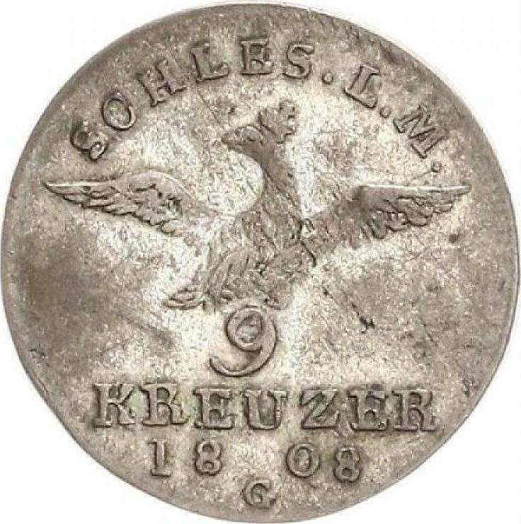 Find out the current coin value of the Prussian 9 Kreuzer 1808 "Silesia" with mark G. This silver coin from the times Frederick William III struck at the Glatz Mint. Wondering how much a coin like this is worth? The record price belongs to the lot 1170 sold at the Heidelberger Münzhandlung Herbert Grün auction for EUR 650. Bidding took place November 15, 2011.