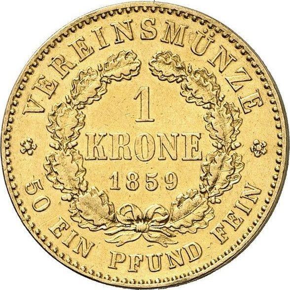 According to the latest data as of December 6, 2025 the average price of a Gold coin Krone 1859 with mark A is 7600 USD. The coin contains 9,9999 g of pure gold, so we do not recommend selling it for less than 1349,53 USD, even if it is in poor condition and has no collectible value.