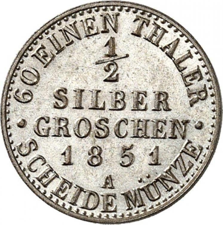 1/2 Silber Groschen 1851 A (Prussia, Frederick William IV)