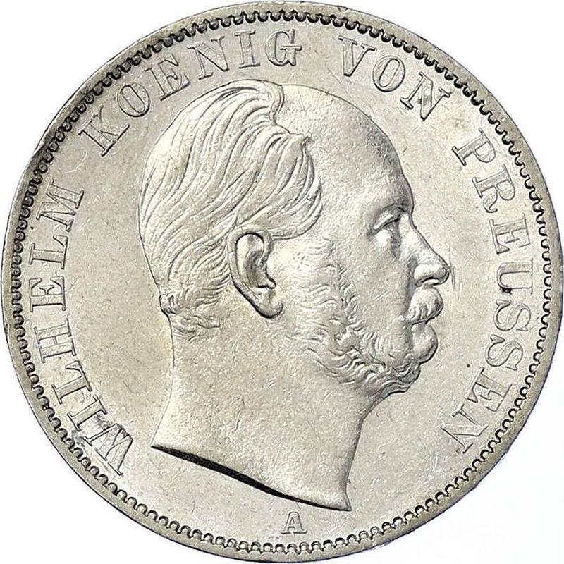 Find out the current coin value of the Prussian Thaler 1865 with mark A. This silver coin from the times William I struck at the Berlin Mint. Wondering how much a coin like this is worth? The record price belongs to the lot 30599 sold at the Heritage Auctions auction for USD 2,640. Bidding took place January 7, 2018.