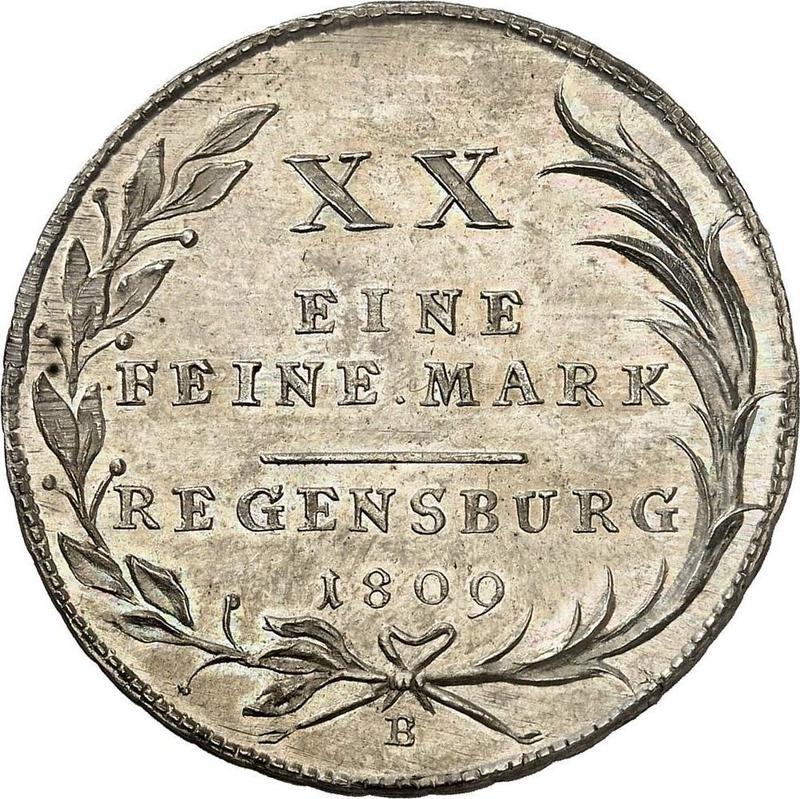 Find out the current coin value of the Regensburg Gulden 1809 with mark B. This silver coin from the times of Carl Theodor von Dalberg. Wondering how much a coin like this is worth? The record price belongs to the lot 1495 sold at the Numismatica Genevensis SA auction for CHF 900. Bidding took place December 9, 2024.