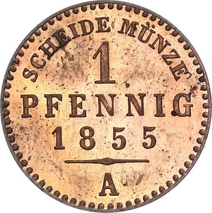 According to the latest data as of December 5, 2025 the average price of a coin 1 Pfennig 1855 with mark A is 180 USD for regular strike and 490 USD for coins minted using the PROOF technology. The coin is made of non-precious metal, so in poor condition it may have extremely low value and liquidity.