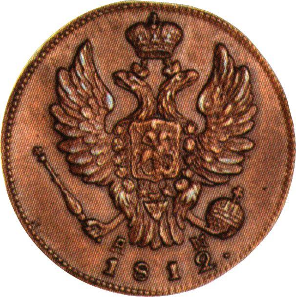 Find out the current coin value of the Russian 1 Kopek 1812 with mark КМ АМ. Restrike. This copper coin from the times of Alexander I struck at the Suzun Mint