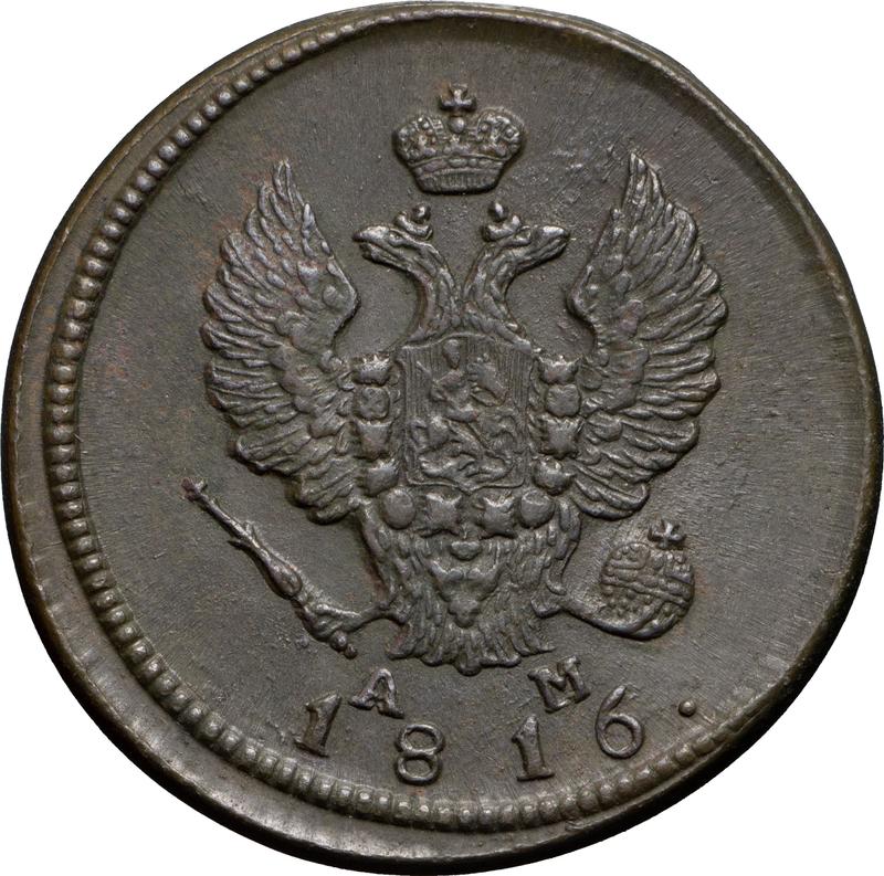 According to the latest data as of December 5, 2025 the average price of a coin 2 Kopeks 1816 with mark КМ АМ is 150 USD. The coin is made of non-precious metal, so in poor condition it may have extremely low value and liquidity.