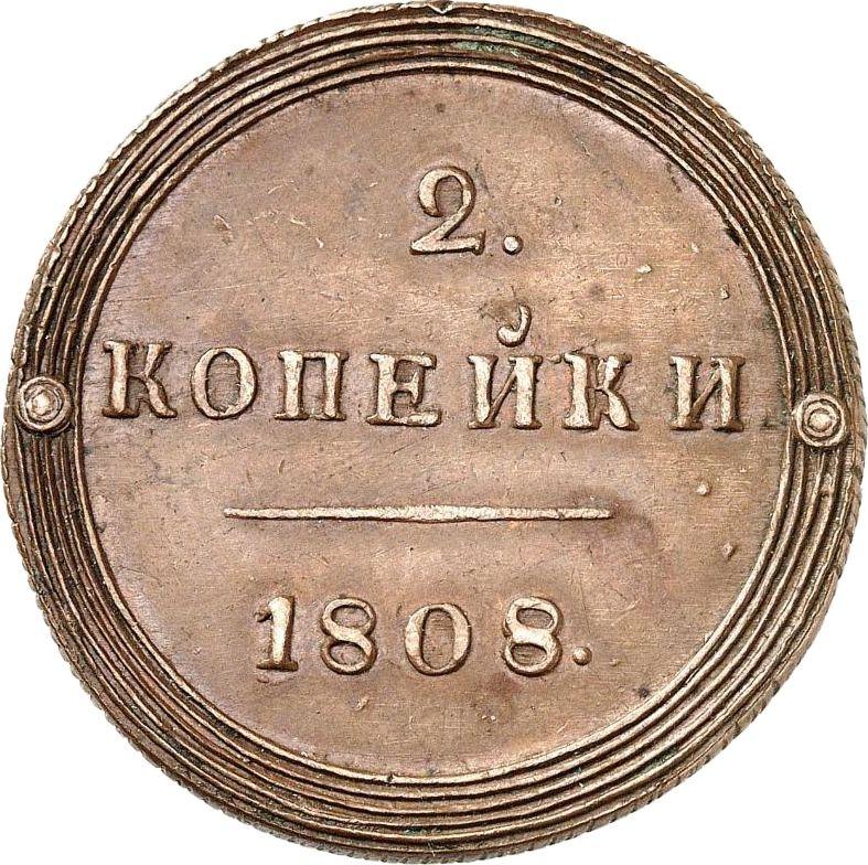 Find out the current coin value of the Russian 2 Kopeks 1808 with mark КМ. Restrike. This copper coin from the times of Alexander I struck at the Suzun Mint. Wondering how much a coin like this is worth? The record price belongs to the lot 522 sold at the Rare Coins auction for RUB 1,100,000. Bidding took place June 8, 2024.