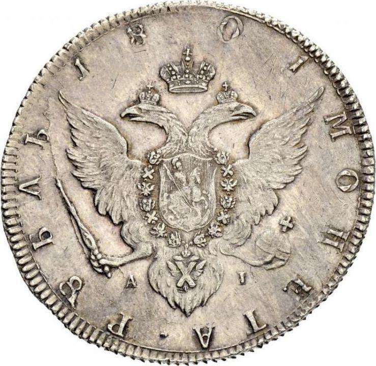 Pattern Rouble 1801 СПБ AI "Portrait with a long neck without frame" (Russia, Alexander I)
