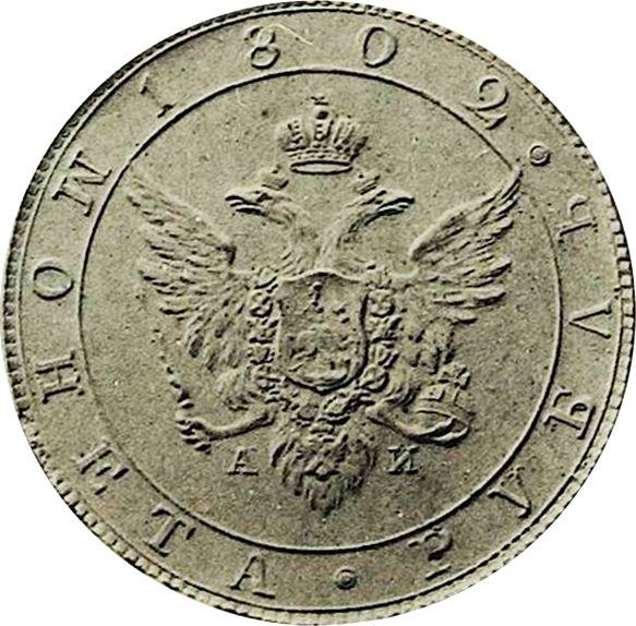 Pattern Rouble 1802 СПБ АИ "Portrait with a long neck without frame". Restrike (Russia, Alexander I)